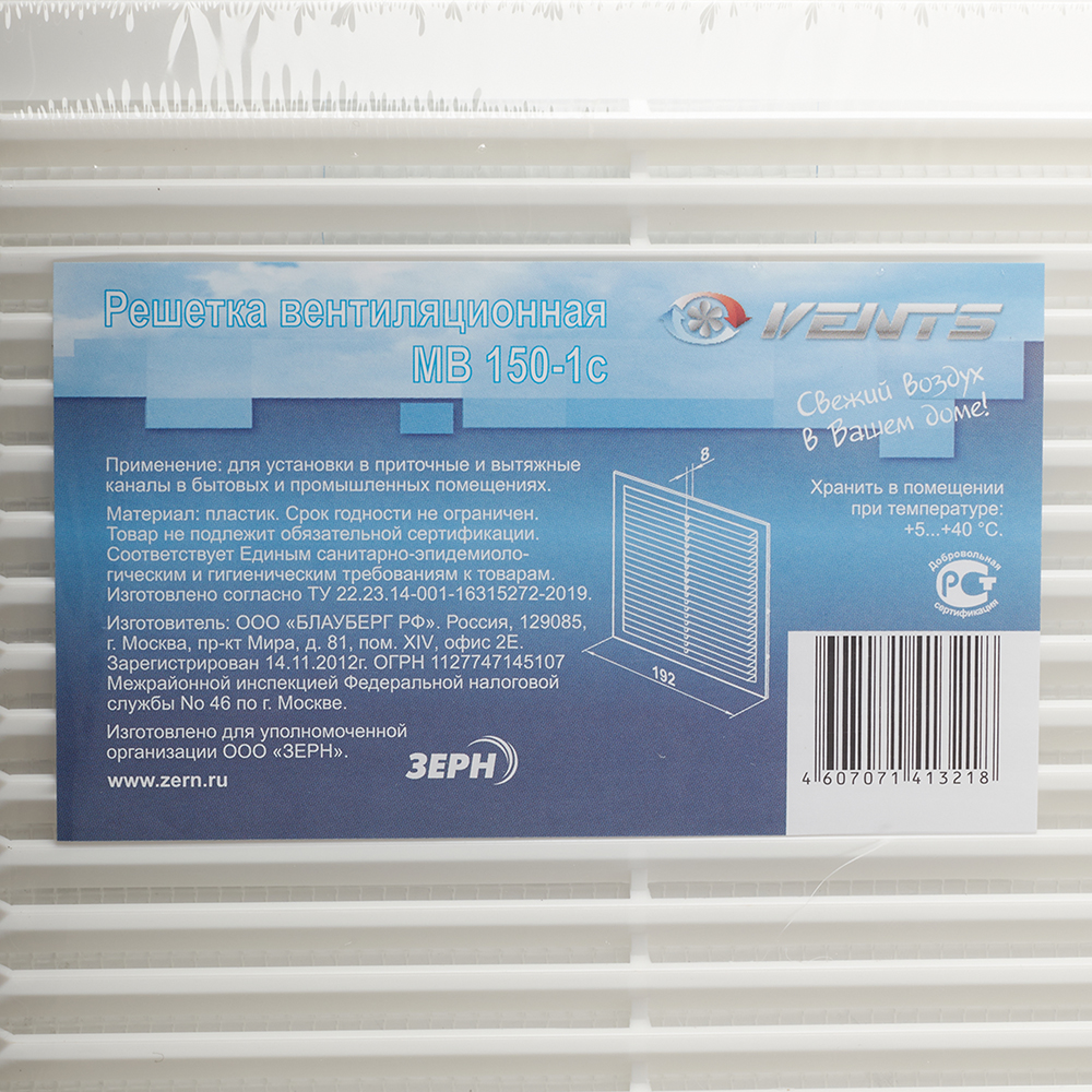 Решетка вентиляционная пластиковая приточно-вытяжная Вентс 192х192 мм с сеткой белая