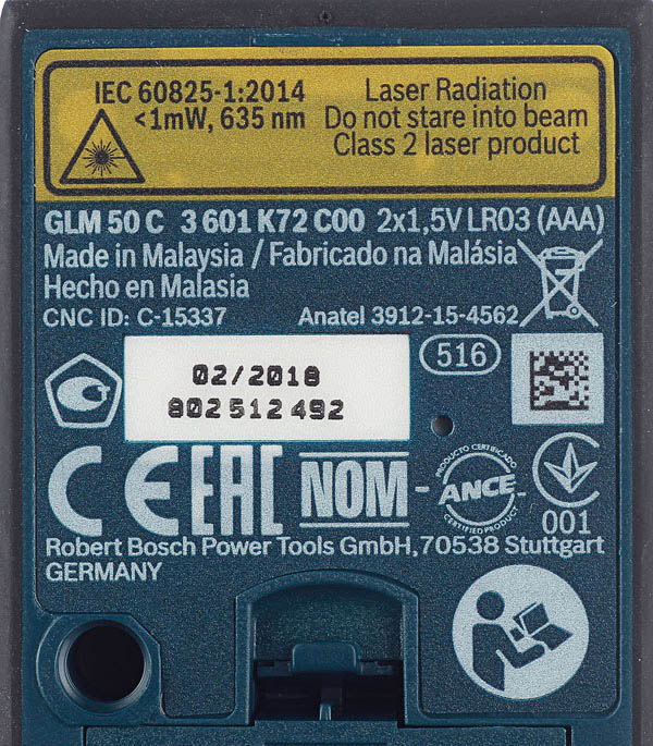 GLM – модель дальномера, 50 – дальность действия в метрах.