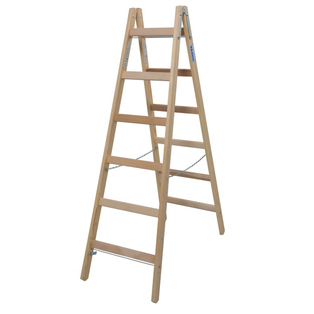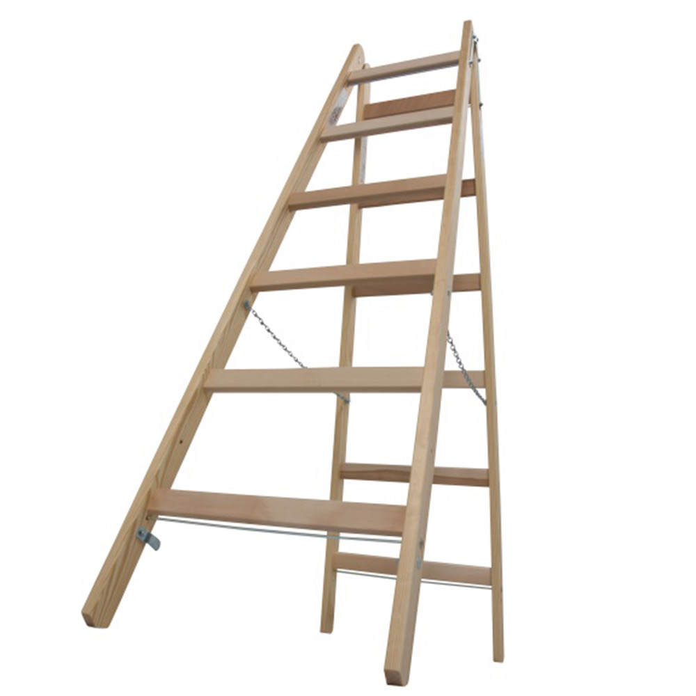 Предназначена для выполнения строительных, ремонтных, отделочных или иных видов работ, когда необходимо произвести какие-либо действия на высоте. Востребована малярами и электриками.rnДвухсторонняя стремянка с перекладинами. rnПрочные стальные шарниры. Страховка цепями от саморасхождения. Фиксаторы для безопасной транспортировки. Боковины из высококачественных пород древесины. Непроводящий ток материал. Перекладины из твердых пород дерева. Экологически безвредная древесина. Продукт сертифицирован в строгом соответствии с ГОСТ 24258-88 и DIN EN-131.