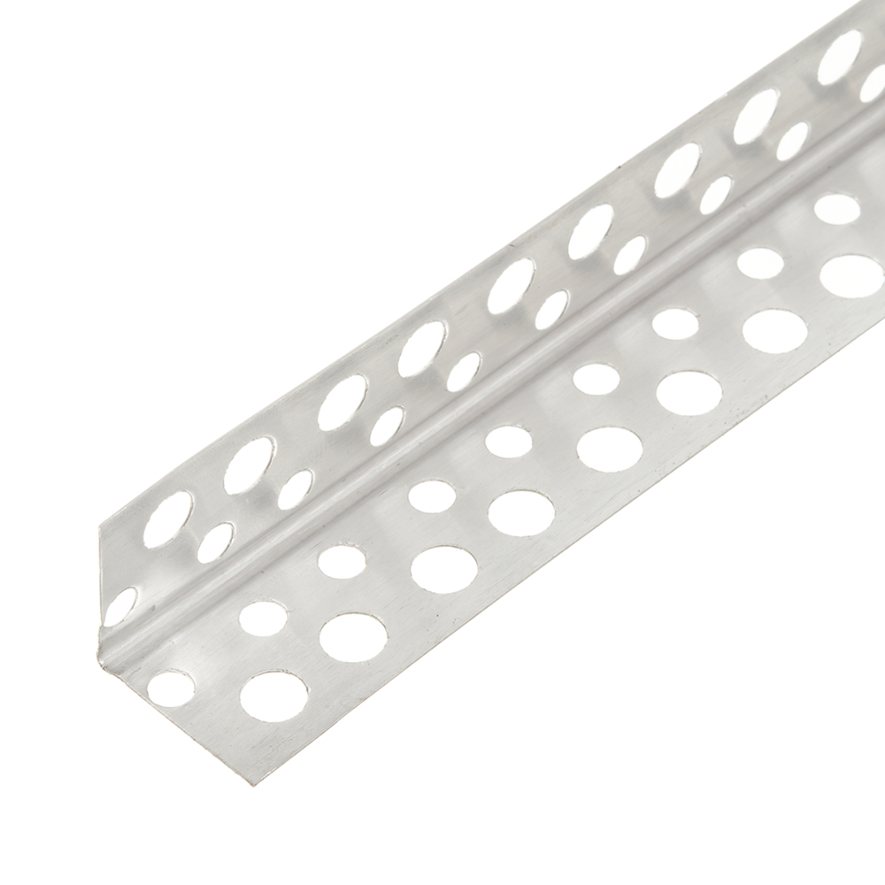 Изготовлен из алюминия толщиной 0,40 мм, длина 3000 мм, ширина полки 25 мм, перфорированный с круглыми отверстиями.rnПредназначен для защиты наружных углов гипсокартонных перегородок и облицовок от механических повреждений. Для внутренних работ. Изготовлен из алюминиевого сплава, что позволяет полностью исключить образование ржавчины после завершения ремонта.
