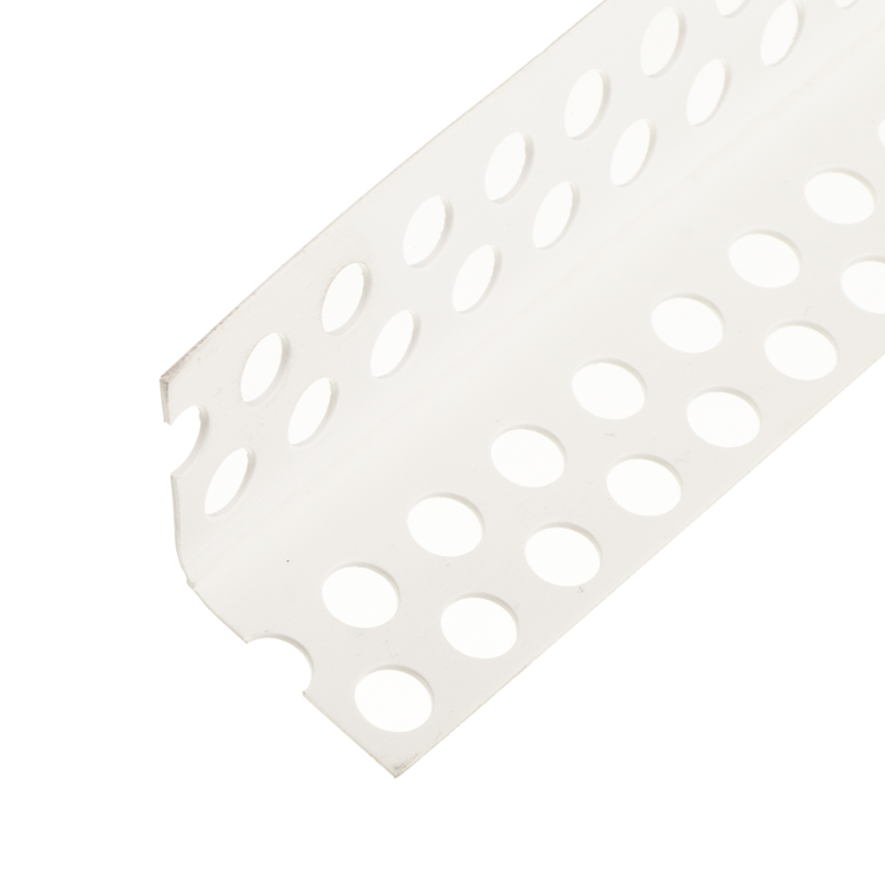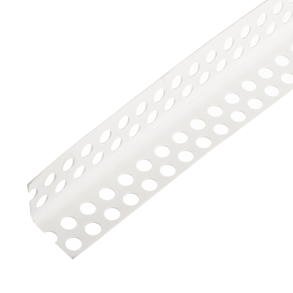 - 2. Профиль углозащитный имеет перфорацию в виде отверстий разного диаметра. При установке профиля, в отверстие проникает штукатурка или шпаклевка, предварительно нанесенная на угол конструкции, что позволяет обеспечить прочное сцепление профиля с поверхностью стен.