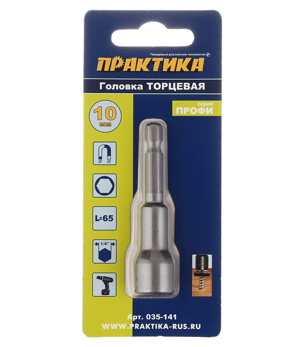 Адаптер для болтов и саморезов Практика 10 мм L65 мм магнитный шестигранная головка (1 шт.)