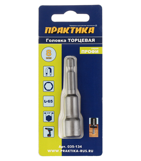 Адаптер для болтов и саморезов Практика 8 мм L65 мм магнитный шестигранная головка (1 шт.)
