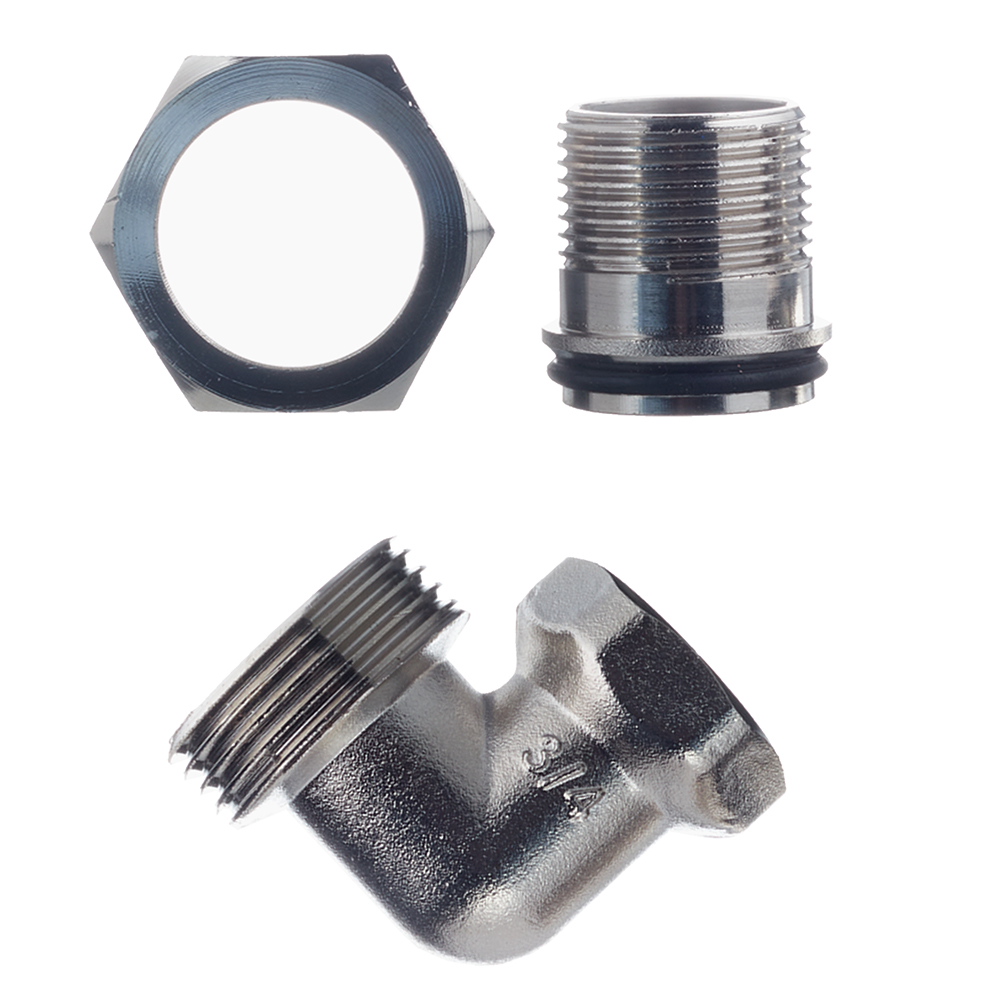 Предназначена для создания углового разъемного соединения в системах водоснабжения и отопления.rnИмеет внутреннюю резьбу 3/4(20 мм) с одной стороны и наружную резьбу 3/4(20 мм) с другой.rnПринцип соединения – конус с кольцевой прокладкой.rnДля монтажа потребуются усики.
