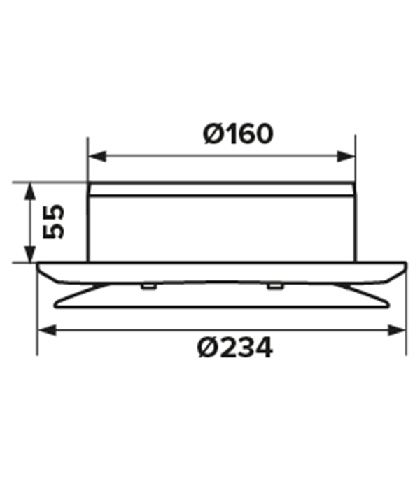 наружный диаметр 234 мм, диаметр присоединяемого воздуховода 160 мм.