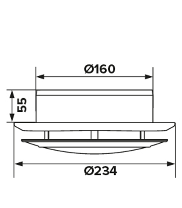 наружный диаметр 234 мм, диаметр присоединяемого воздуховода 160 мм.