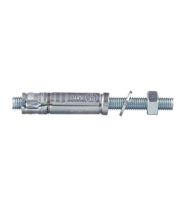 Предназначен для монтажа тяжелых и умеренно тяжелых элементов и конструкций в таких материалах, как бетон и природный камень. Анкер имеет большую зону расклинивания, которая позволяет производить монтаж в основания низкого качества, например, при работах в зданиях старой постройки, а также, когда сложно определить структуру материала основания. Изготовлен из оцинкованной стали. Представляет собой штангу с резьбой со стандартной гайкой и шайбой, на которой установлена 4-х лепестковая распорная гильза с резьбой на внутренней части.