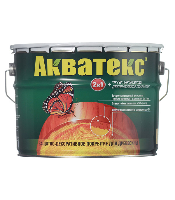 Защитно-декоративное покрытие для древесины 2 в 1 (грунт-антисептик + декоративное покрытие).rnПредназначен для защиты древесины от атмосферных воздействий, УФ-излучения и биопоражения: гниения, плесени, грибков, древесной синевы, а также от заражения деревопоражающими насекомыми; для декоративной обработки древесины под ценные породы. Трудновымываемый антисептик глубоко проникает в древесину (до 5 мм). Допускается обработка древесины влажностью до 40%. rnПрименяется для наружных и внутренних работ. Содержит уменьшенное количество летучих органических соединений.