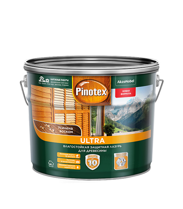 Область применения для наружных работ. Подходит для деревянных строений из бруса, оцилиндрованного бревна, вагонки, блок хауса, планкена, атакже окон, дверей и других вертикальных поверхностей изстроганой и пиленой древесины. Рекомендуется для отделки хвойных и лиственных пород древесины.rnОсобенности примененияrnПередприменениеми в процессеработы тщательно перемешивать. Произвестиподготовку поверхности (отшлифуйте, затем уберите пыль неворсистой тканью). В случае, если на поверхности заметны гниль, смола или смоляные карманы, пятна ржави, дубильные вещества, тщательно отшлифуйте поверхность, обработайте блокирующим грунтом или антисептиком.rnОсоботщательно пропитывать торцевые поверхностиобрабатываемой древесины. Для создания эффекта натурального покрытия допустимо применять базупод колеровку как самостоятельное покрытие, но защитные свойства будут ниже, чем у цветного покрытия.rnПри понижении температуры и увеличении относительной влажности воздуха время высыхания может увеличиться. Если поверхность находится под интенсивным воздействием солнечных лучей, рекомендуется наносить лазурь в 3 слоя.rnДеформациядревесины впроцессе усадки или несоблюдение условий нанесения может привести к нарушению целостности покрытия,в этом случае проведите ремонтные работы по восстановлению покрытия.rnРазбавлениене требуется. При необходимости осветлениявыбранного оттенка разбавить в соотношениине более 1 части пропитки Ultra (СLR) на 2 части оттеночной.