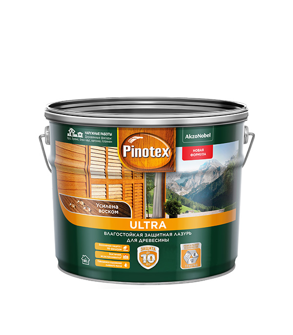 Область применения для наружных работ. Подходит для деревянных строений из бруса, оцилиндрованного бревна, вагонки, блок хауса, планкена, атакже окон, дверей и других вертикальных поверхностей изстроганой и пиленой древесины. Рекомендуется для отделки хвойных и лиственных пород древесины.rnОсобенности примененияrnПередприменениеми в процессеработы тщательно перемешивать. Произвестиподготовку поверхности (отшлифуйте, затем уберите пыль неворсистой тканью). В случае, если на поверхности заметны гниль, смола или смоляные карманы, пятна ржави, дубильные вещества, тщательно отшлифуйте поверхность, обработайте блокирующим грунтом или антисептиком.rnОсоботщательно пропитывать торцевые поверхностиобрабатываемой древесины. Для создания эффекта натурального покрытия допустимо применять базупод колеровку как самостоятельное покрытие, но защитные свойства будут ниже, чем у цветного покрытия.rnПри понижении температуры и увеличении относительной влажности воздуха время высыхания может увеличиться. Если поверхность находится под интенсивным воздействием солнечных лучей, рекомендуется наносить лазурь в 3 слоя.rnДеформациядревесины впроцессе усадки или несоблюдение условий нанесения может привести к нарушению целостности покрытия,в этом случае проведите ремонтные работы по восстановлению покрытия.rnРазбавлениене требуется. При необходимости осветлениявыбранного оттенка разбавить в соотношениине более 1 части пропитки Ultra (СLR) на 2 части оттеночной.