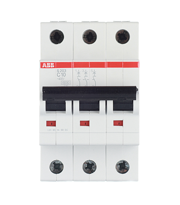 Автоматический выключатель ABB S203 (2CDS253001R0104) 3P 10А тип C 6 кА 400 В на DIN-рейку