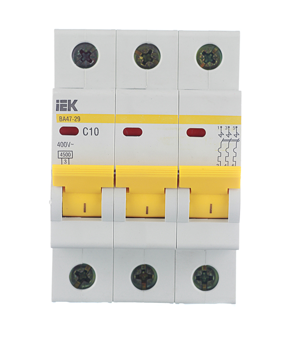 Автоматический выключатель IEK ВА 47-29 (MVA20-3-010-C) 3P 10А тип C 4,5 кА 400 В на DIN-рейку