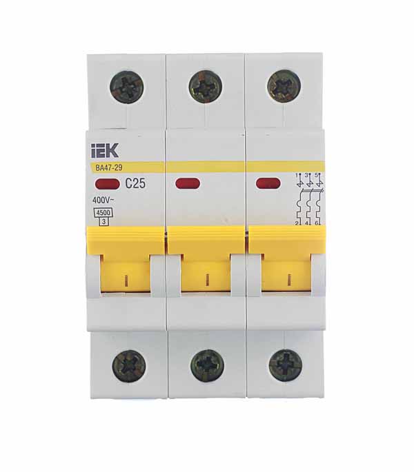 Автоматический выключатель IEK ВА 47-29 (MVA20-3-025-C) 3P 25А тип C 4,5 кА 400 В на DIN-рейку