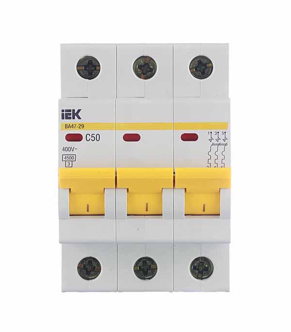 Автоматический выключатель IEK ВА 47-29 (MVA20-3-050-C) 3P 50А тип C 4,5 кА 400 В на DIN-рейку