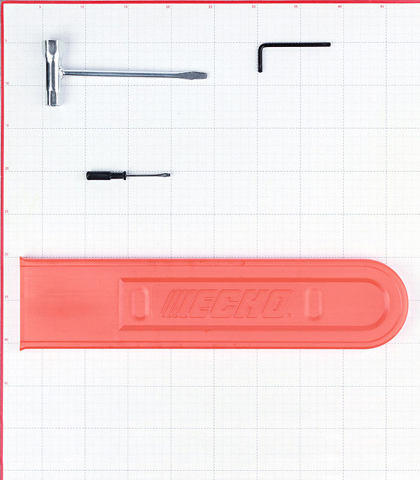 Бензопила, Чехол для пильной шины, Шина, Цепь пильная, Отвертка, Ключ свечной/комбинированный, Г-образный шестигранный ключ, Руководство по эксплуатации.