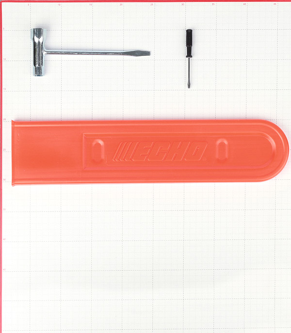 Бензопила, Чехол для пильной шины, Шина, Цепь пильная, Упор зубчатый, Винт крепления зубчатого упора, Отвертка, Ключ свечной/комбинированный, Руководство по эксплуатации.