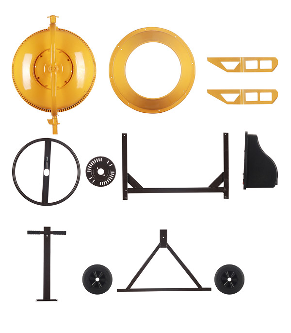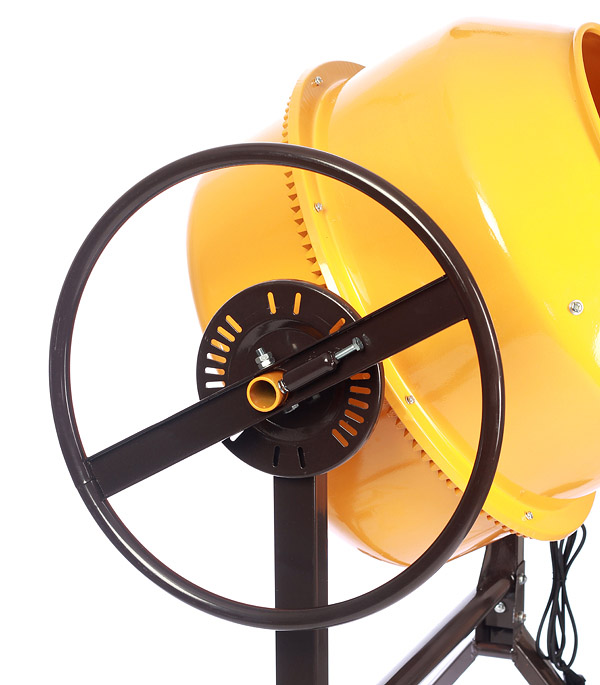 Предназначен для производства цементно-песчаных кладочных, штукатурных растворов и бетонов с фракцией заполнителя до 40 мм. Имеет цельный чугунный венец.rnПоставляется в разобранном виде, в картонной упаковке.
