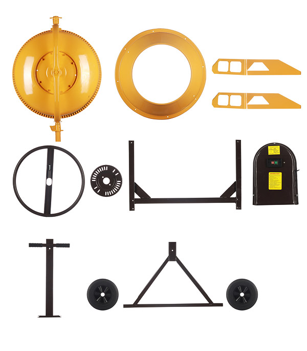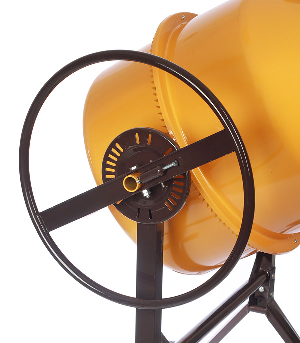Предназначен для производства цементно-песчаных кладочных, штукатурных растворов и бетонов с фракцией заполнителя до 40 мм. Имеет цельный чугунный венец.rnПоставляется в разобранном виде, в картонной упаковке.
