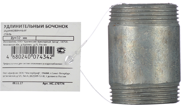 Бочонок 1 1/4 НР(ш) х 1 1/4 НР(ш) стальной оцинкованный