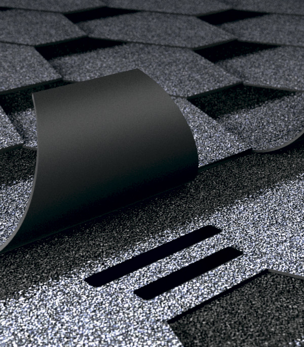 SBS-модифицированный битум в основании придаёт черепице особо высокую пластичность, поэтому она не трескается на морозе и не коробится в жаркую погоду. Кроме того, её удобно сгибать при монтаже криволинейных участков кровли.
