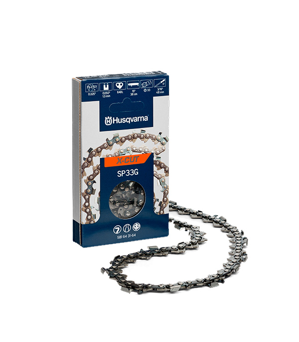 X-CUT SP33G это первая пильная цепь, которая была полностью разработана и произведена компанией Husqvarna. Цепь отлично подходит для требовательных пользователей и ежедневной профессиональной работы. Она не требует заточки и натяжения длительное время, обладает выдающейся прочностью и высокой эффективностью пиления. Она создана, чтобы сделать Вашу производительность лучше, чем когда бы то ни было.rnСнижение риска обратного отскока – соединительное звено G-типа с верхним выступом-амортизатором.