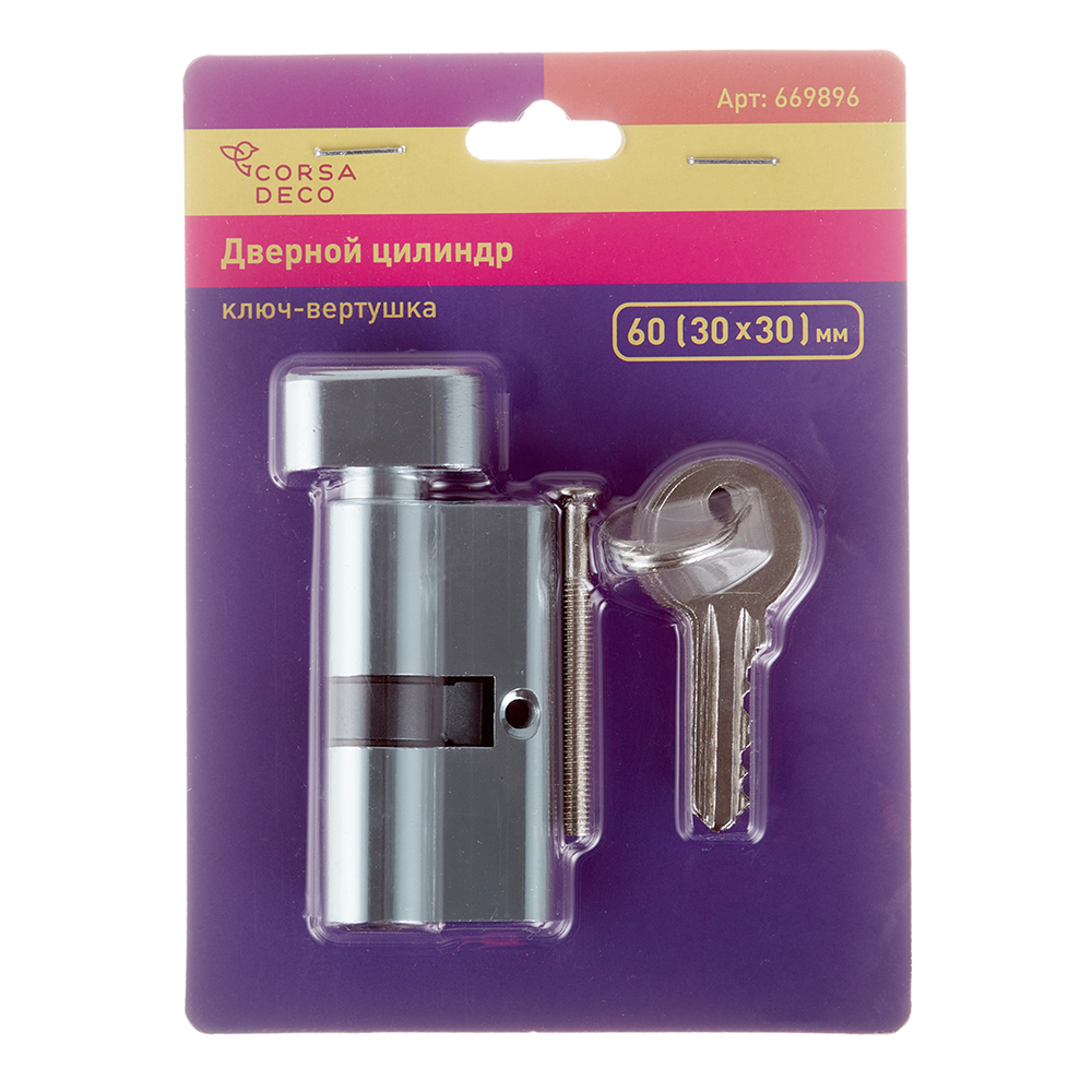 Цилиндр Corsa Deco 60 (30х30) мм ключ/вертушка матовый никель