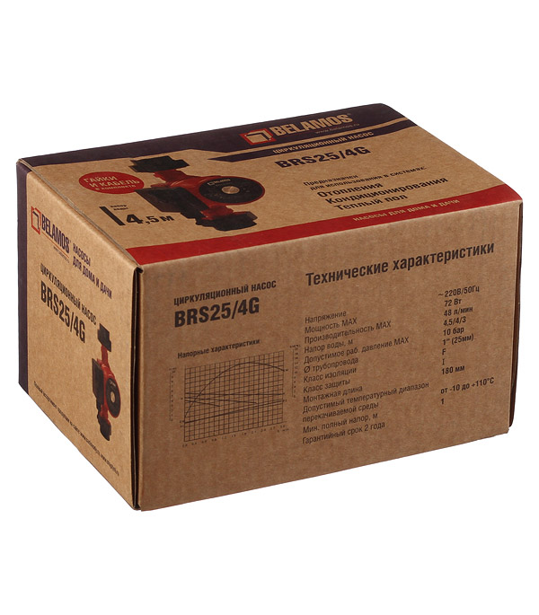 Циркуляционный насос для систем отопления Belamos BRS25/4G (25/4g) DN25 подъем 4 м 180 мм