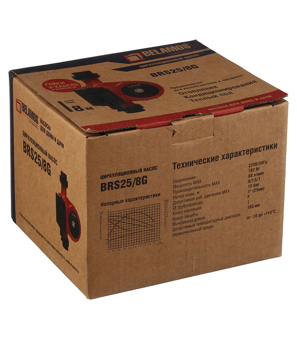 Циркуляционный насос для систем отопления Belamos BRS25/8G (25/8g) DN25 подъем 8 м 180 мм