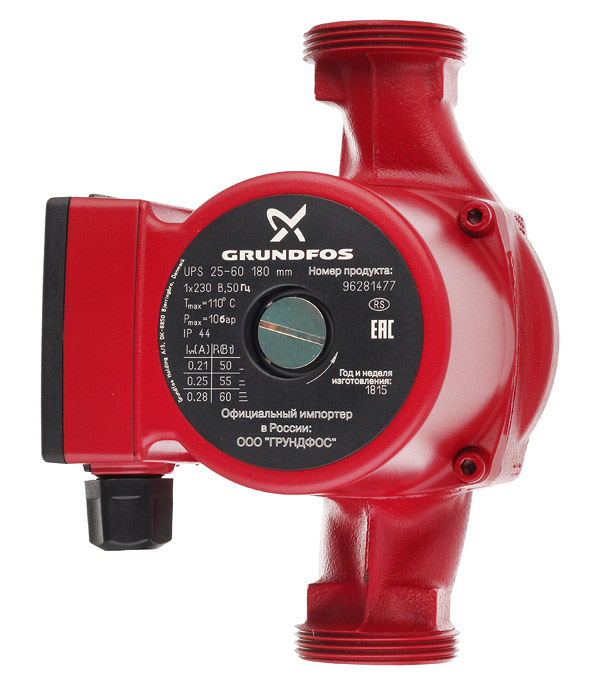 Циркуляционный насос для систем отопления Grundfos UPS 25-60 (96281477) DN25 подъем 6 м 180 мм с гайками