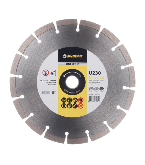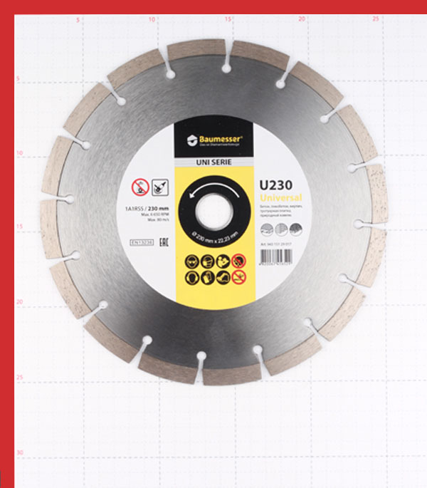 Предназначен для «сухой» резки слабоармированного бетона, кирпича, пенобетона, тротуарной плитки, природного камня. Устанавливается на УШМ.
