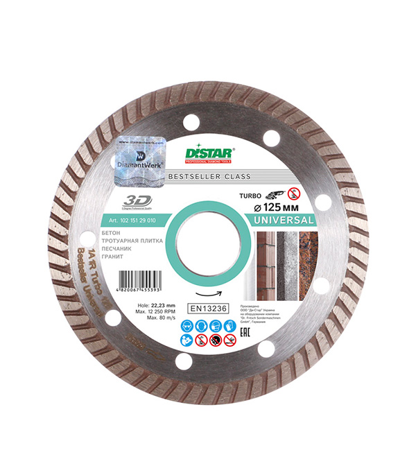 Диск алмазный по бетону Distar Bestseller Universal (10215129010) 125×22,2×2,2 мм турбо сухой рез