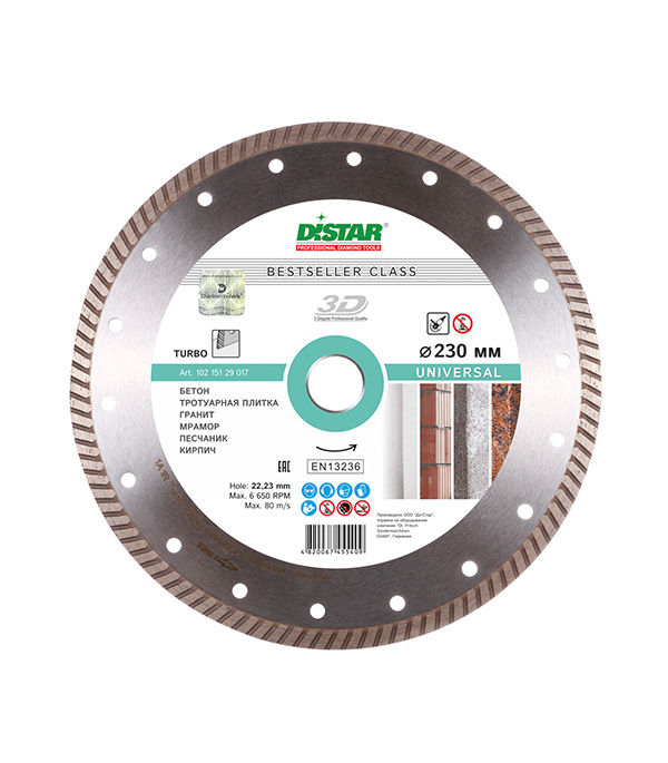 Диск алмазный по бетону Distar Bestseller Universal (10215129017) 230×22,2×2,6 мм турбо сухой рез