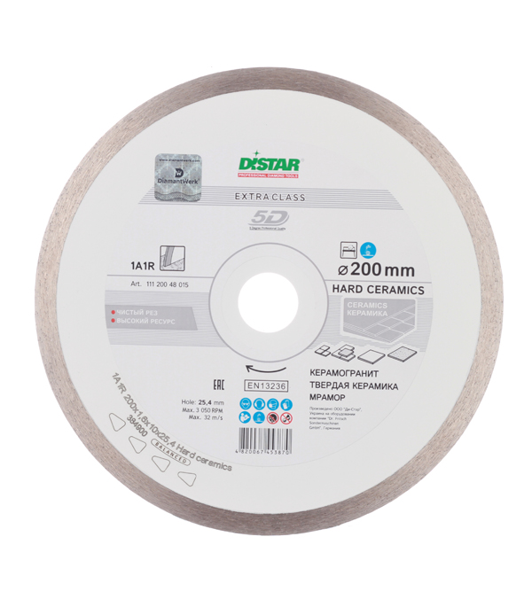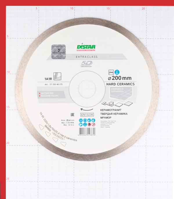 Диск алмазный по керамике Distar 5D (11120048015) 200×25,4×1,6 мм мм сплошной мокрый рез