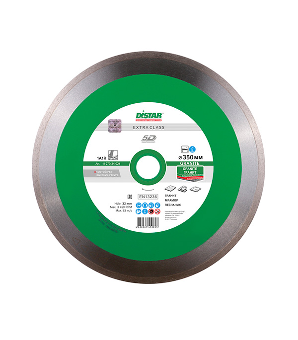 Предназначен для резки керамогранита, гранита 1-5 категории, базальта, лабрадорита. При резке диском Distar Granite обязательно используйте подачу воды в зону реза.