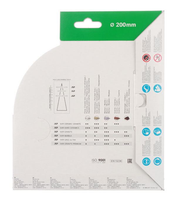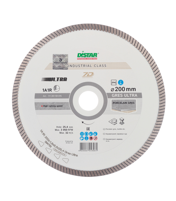 Предназначен для «влажной» резки керамогранита, гранита, мрамора, песчаника и кирпича. Устанавливается на электрический плиткорез. Обеспечивает чистый рез обрабатываемого материала.