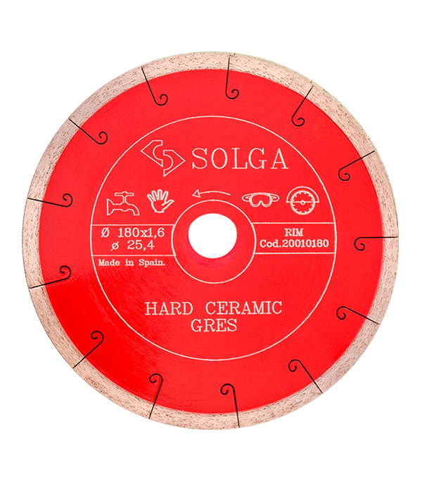 Диск алмазный по керамограниту Solga 180×25,4×1,6 мм мм сплошной мокрый рез