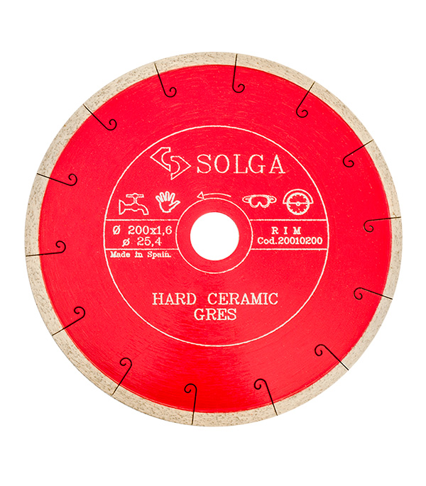Диск алмазный по керамограниту Solga 200×25,4×1,6 мм мм сплошной мокрый рез