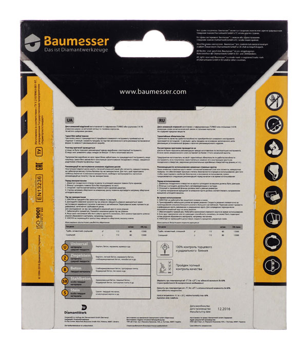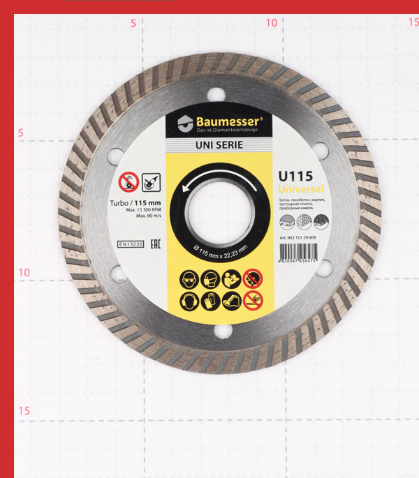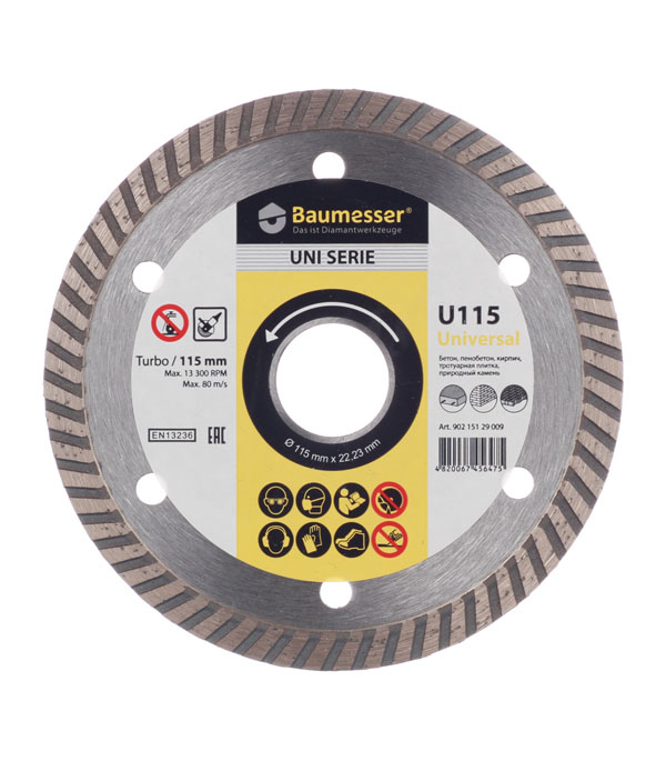 Диск алмазный турбо 115х22,2 мм Baumesser. Алмазный диск турбо.Область применения бетон, пенобетон, кирпич, тротуарная плитка, природный камень.