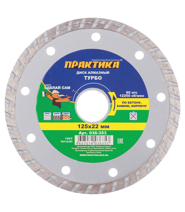 Диск алмазный универсальный Практика (036-353) 125×22,2×2,4 мм турбо сухой рез