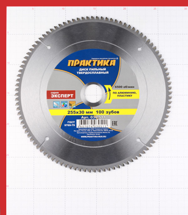 Диск пильный по алюминию Практика (030-511) 255х30х3,2 мм 100 зубьев
