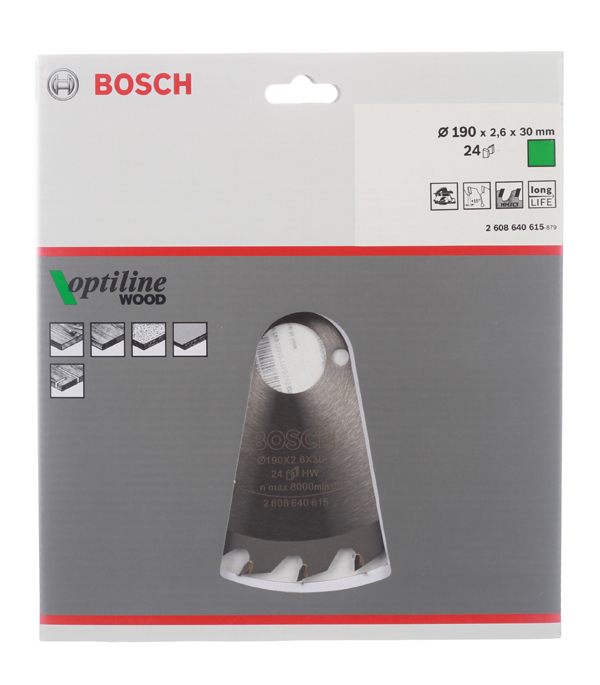 Диск пильный по дереву Bosch Optiline (2608640615) 190х30х2,6 мм 24 зуба