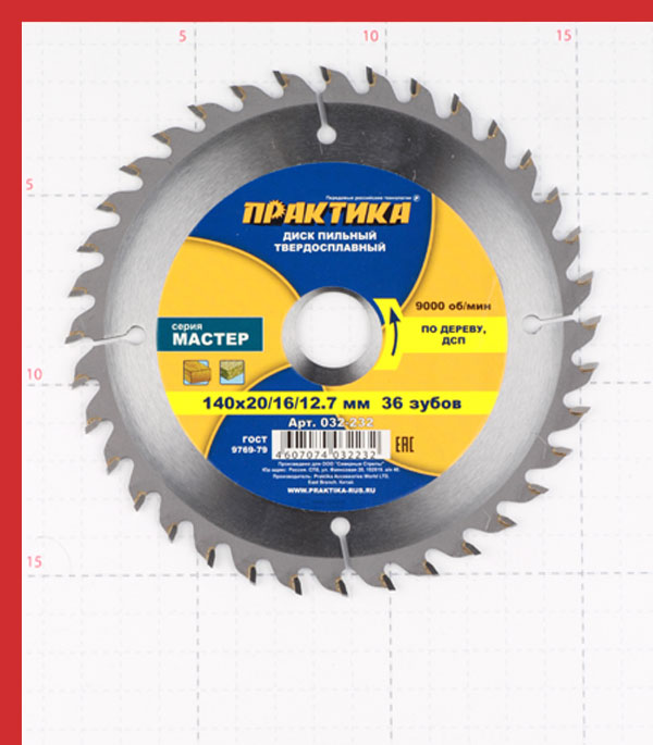 Диск пильный по дереву Практика (032-232) 140х16/20х1,8 мм 36 зубьев