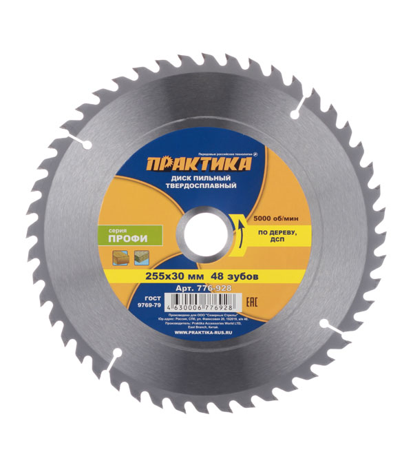 Диск пильный по дереву Практика (776-928) 255х30х2,8 мм 48 зубьев