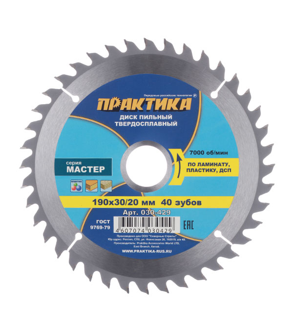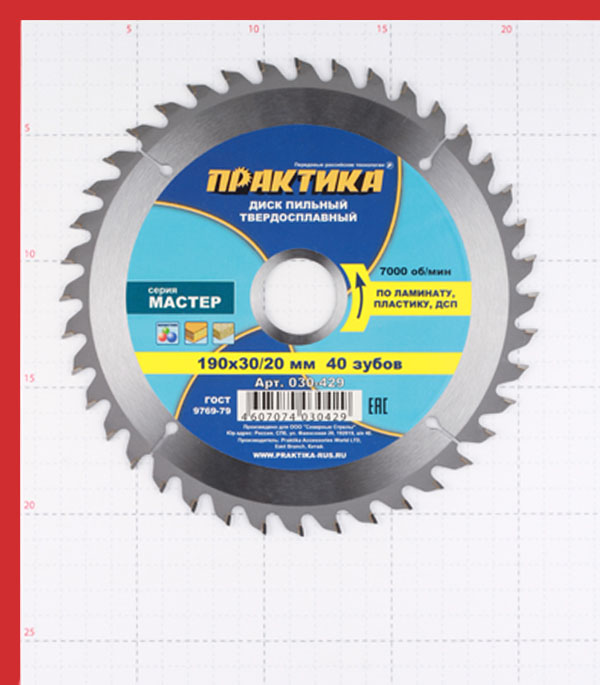 Диск пильный по ламинату Практика (030-429) 190х30/20х2,8 мм 40 зубьев
