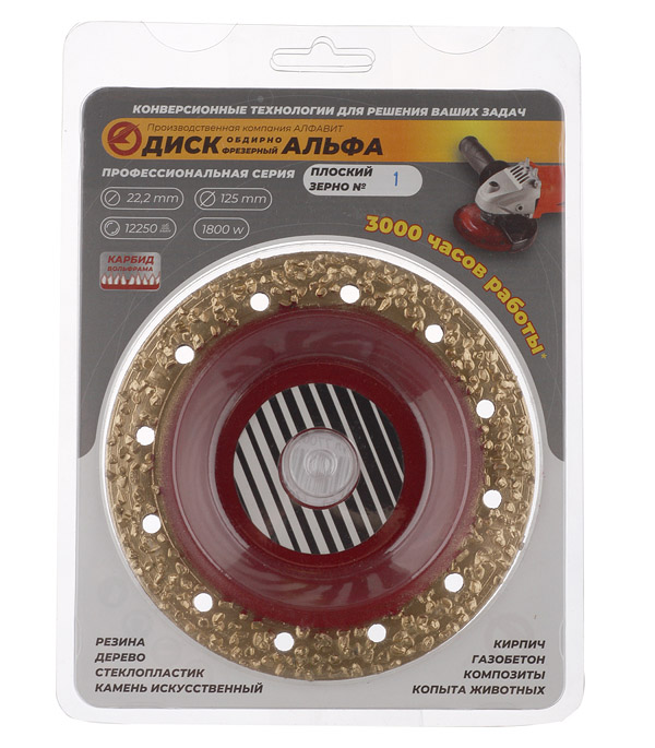 Предназначен для грубой обработки дерева, газосиликатных блоков, пенобетона, пластика, резины, кирпича, стеклопластика, горной породы вулканического происхождения и можно очищать лакокрасочные материалы с любых поверхностей. Устанавливается на шлифмашину угловую (УШМ). Разрешенная предельная мощность УШМ 1800 Вт. В зависимости от твердости обрабатываемых материалов нужно регулировать частоту вращения УШМ, чем плотнее материал тем ниже должны быть обороты.