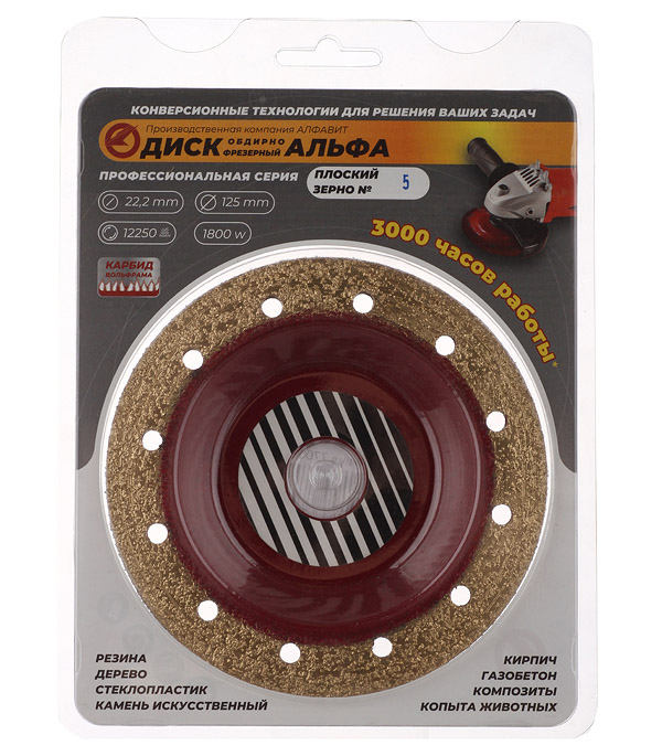Предназначен для обработки дерева, газосиликатных блоков, пенобетона, пластика, резины, кирпича, стеклопластика, горной породы вулканического происхождения и можно очищать лакокрасочные материалы с любых поверхностей. Устанавливается на шлифмашину угловую (УШМ). Разрешенная предельная мощность УШМ 1800 Вт. В зависимости от твердости обрабатываемых материалов нужно регулировать частоту вращения УШМ, чем плотнее материал тем ниже должны быть обороты.