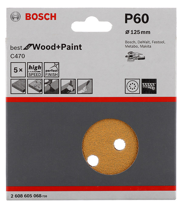 Диск шлифовальный Bosch d125 мм P60 на липучку перфорированный (5 шт.)
