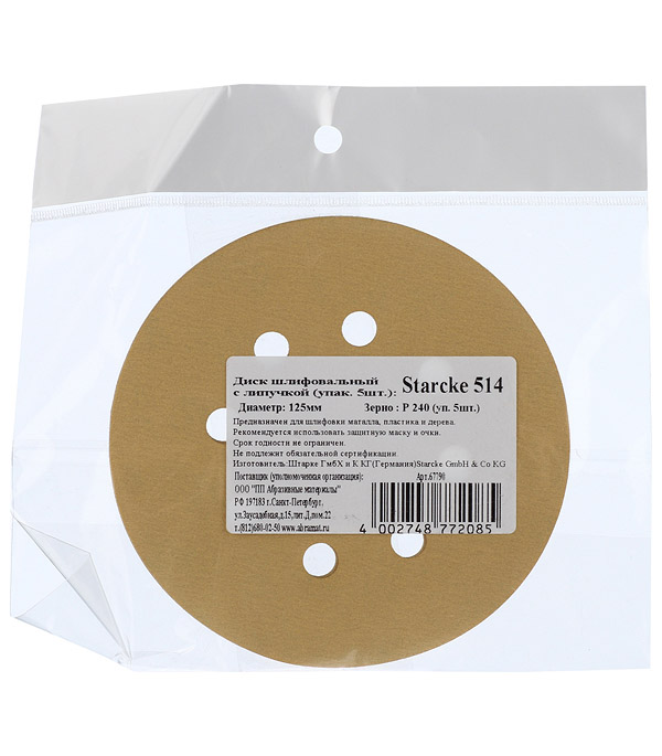Диск шлифовальный Starcke d125 мм P240 на липучку перфорированный (5 шт.)