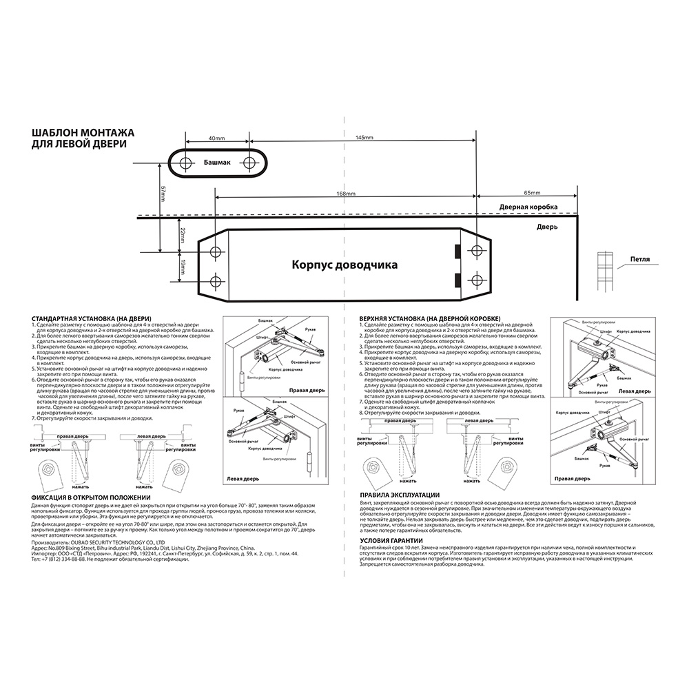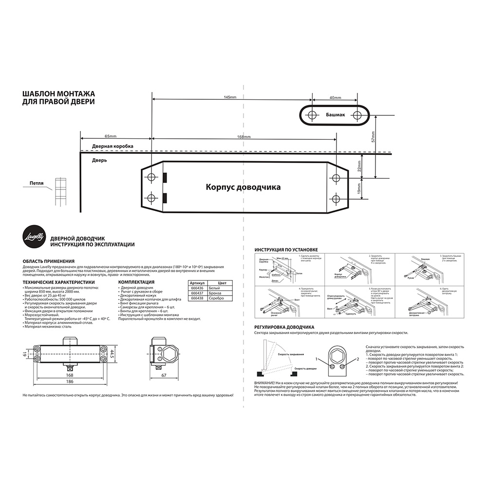 Предназначен для гидравлически контролируемого в двух диапазонах (180°-10° и 10°-0°) закрывания дверей. Подходит для большинства пластиковых, деревянных и металлических дверей во внутренних и внешних помещениях, открывающихся наружу и вовнутрь, право – и левосторонних.rnРегулируемая скорость закрывания двери и скорость окончательной доводки. Фиксация двери в открытом положении.