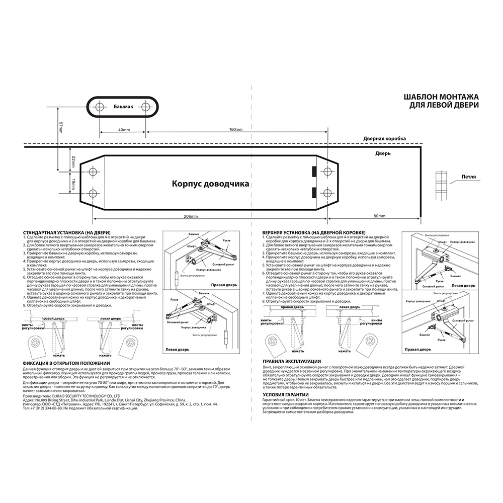Предназначен для гидравлически контролируемого в двух диапазонах (180°-10° и 10°-0°) закрывания дверей. Подходит для большинства пластиковых, деревянных и металлических дверей во внутренних и внешних помещениях, открывающихся наружу и вовнутрь, право – и левосторонних.rnТЕХНИЧЕСКИЕ ХАРАКТЕРИСТИКИrn Регулируемая скорость закрывания двери и скорость окончательной доводки.rn Фиксация двери в открытом положенииrn Морозоустойчивый. Температурный режим работы от -45°С до +40°С.